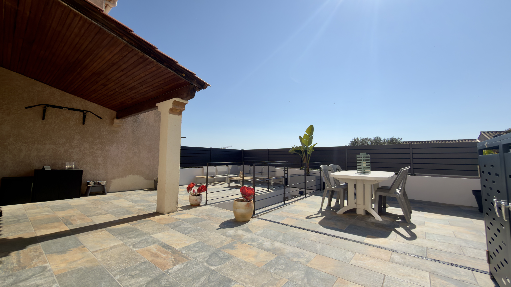 Ce niveau comprend également un WC indépendant. La pièce de vie s'ouvre sur deux terrasses : une terrasse de 54 m2 exposée plein Sud idéale pour profiter du soleil et recevoir, ainsi qu'une seconde terrasse de 41 m2 exposée Nord.